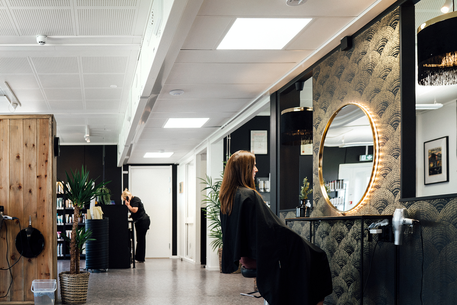 For Best Frisør var det viktig at de fikk sette sitt preg på lokalene de skulle inn i, med romslige koronavennlige lokaler tilbyr de nå fullverdig frisørbehandlinger i det midlertidige sentrumet.