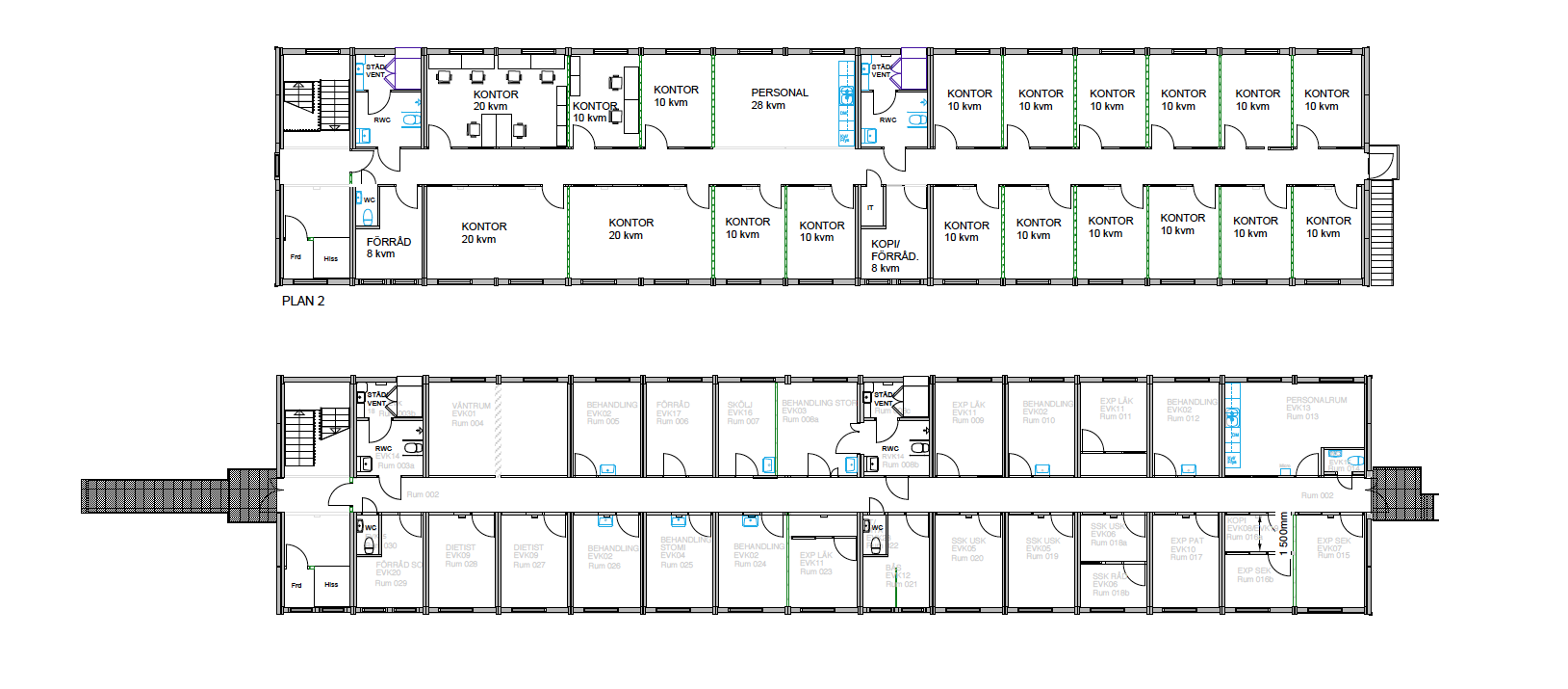 Til Østra sykehuset ble det bygget spesialmoduler for å imøtekomme kravene, men de er i utgangspunktet basert på Expandias K2000-moduler. De to bygningene består totalt av 26 moduler i to etasjer og har fasadeplater i grått komposittmateriale for å passe inn med de øvrige bygningene i området.