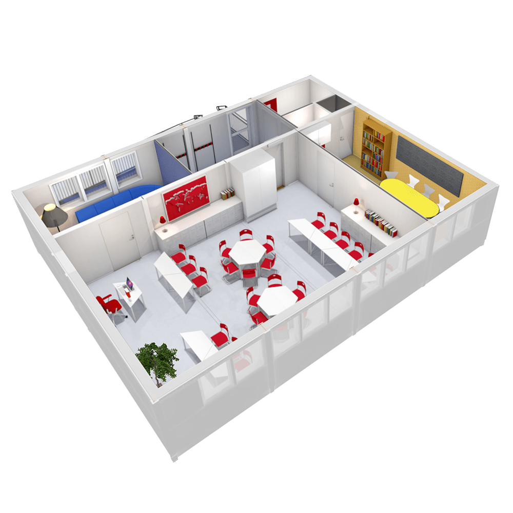 Et godt skolemiljø skaper rammer for både fordypning og fellesskap. Våre lokaler er designet for undervisning, gruppearbeid og sosiale områder for både elever og ansatte. Ta en titt på noen av våre planløsninger, og last ned plantegning og pris.