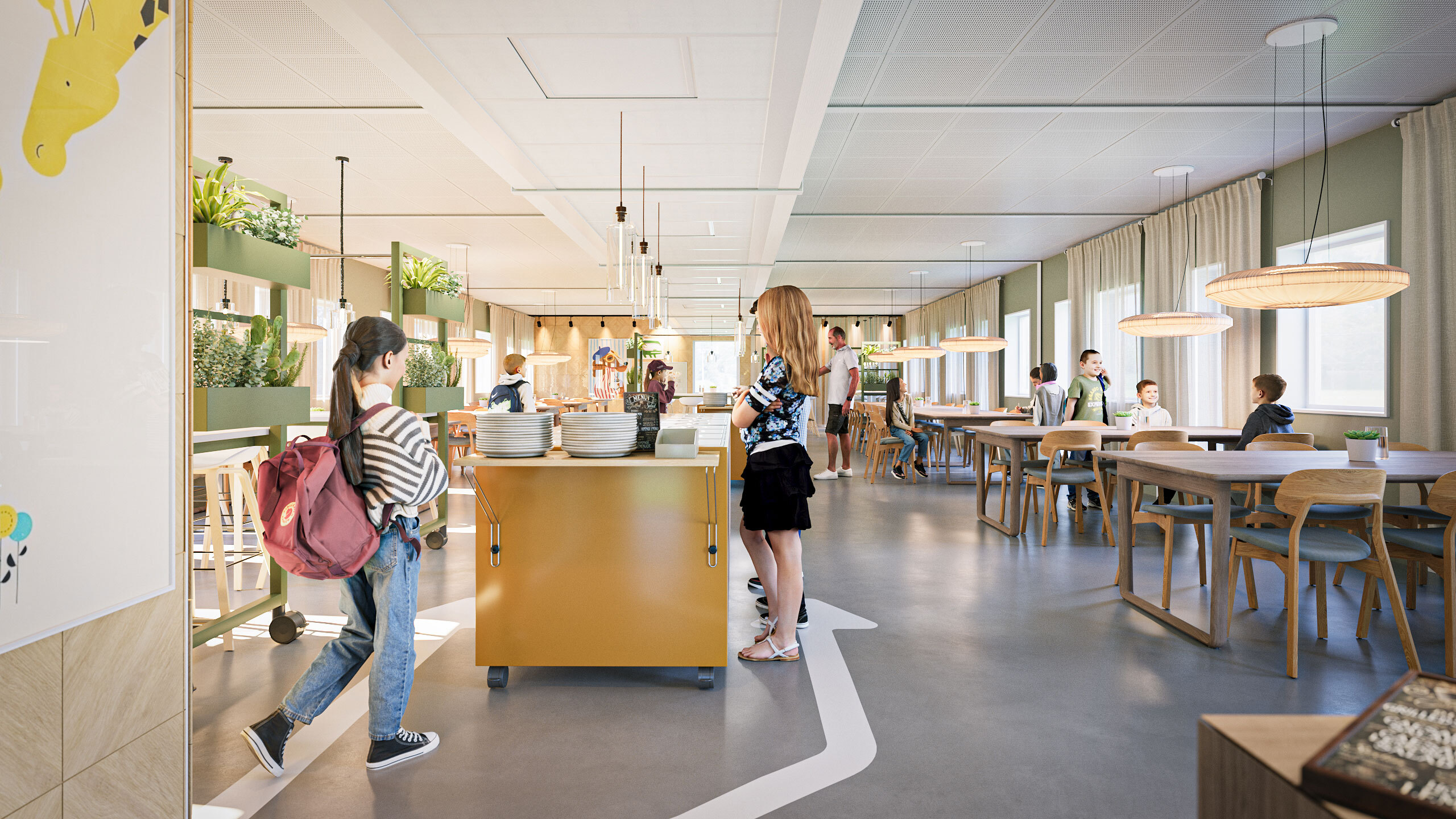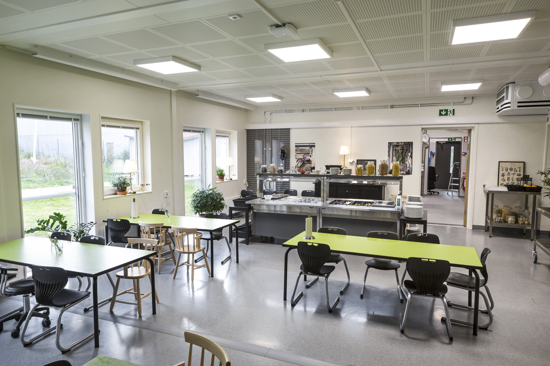 For større arealer som kantiner kan vår nye modul K3000 brukes. Den er utviklet for å skape store, åpne og lyse rom der mange mennesker kan oppholde seg samtidig uten at det føles trangt eller støyende.